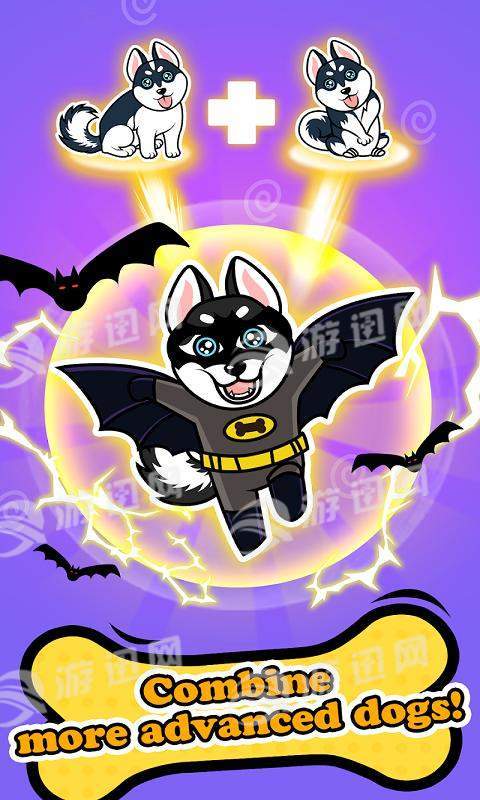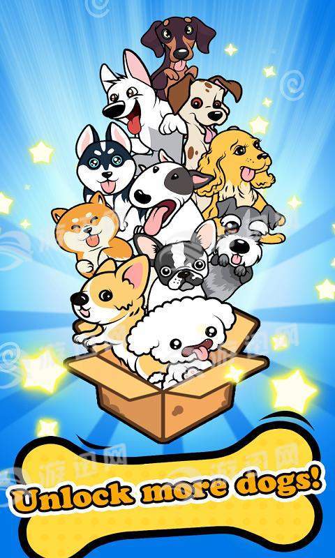 从小型狗狗开始,透过不断合成升级,将它们升等为更大更快的狗狗来得更多金币!