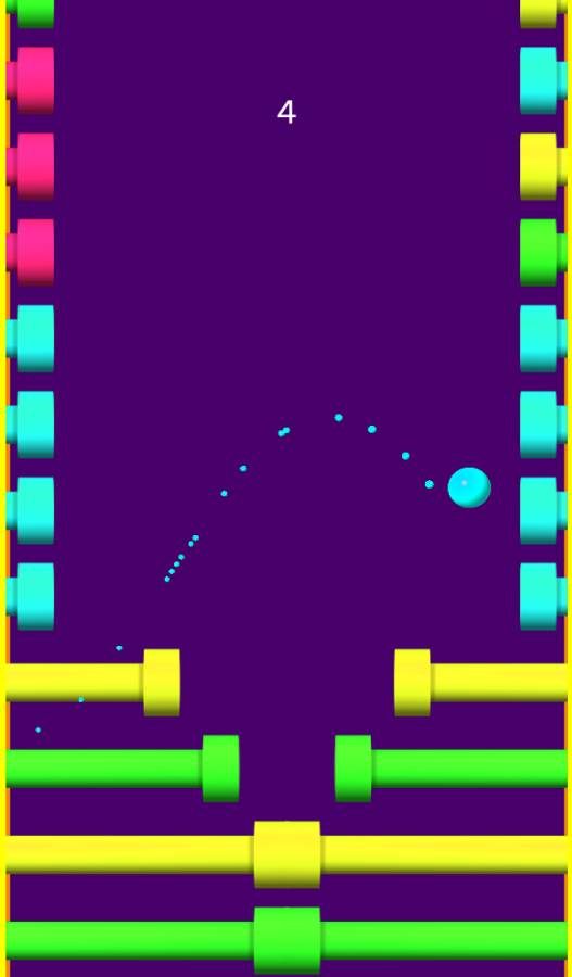 2、使用小球来撞击相应的色彩圆柱,只有不断地撞击,你才能前往更高的地方;