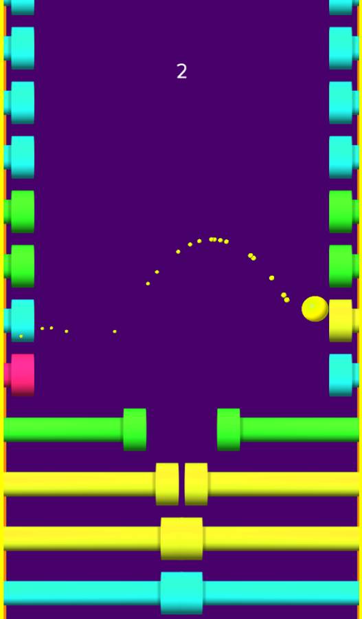 《色彩攀升》是一款简约风格的的休闲挑战类手游,玩家需要控制颜色不断变化的小球向上跳跃,并且只能撞击到两边颜色相同的圆柱上,这就很考验玩家的把握力度了,只需要点击屏幕即可,感兴趣的玩家快来下载试试吧!