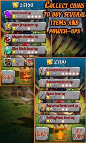 《原始人冲冲冲 Caveman Dino Rush》是一款跑酷游戏,在游戏中我们需要拯救被绑架的妹子,游戏的操作非常简单,游戏使用重力感应操控人物左右移动,按住左边屏幕控制跳跃,按住右边屏幕实施攻击,而攻击时使用的斧头有数量限制,不过我们可以拾取路边遗落的斧头来进行补充。此外在游戏中我们还可以乘骑友方的恐龙坐骑。游戏目前拥有40个关卡供玩家挑战,喜欢跑酷类游戏的玩家可以尝试下这款游戏。