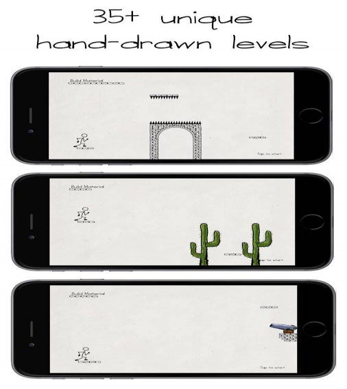 是一款手绘涂鸦风格闯关玩法手游,你需要迅速采取行动,不然Mr Treppe就要掉下去咯,每关玩家都会得到一定数量的砖头,搭建他们帮助主角顺利过关。