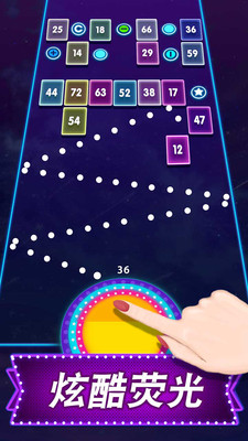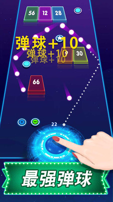 3、游戏乐趣:小球和砖块的碰撞反弹动感十足,只需要一个手指即可体验全部内容,游戏界面超华丽,视觉特效超酷炫,游戏音乐超带感。