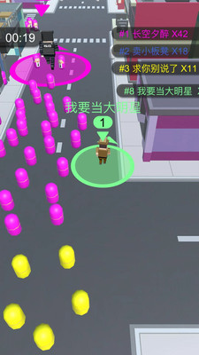 《圈粉大作战》是一款非常好玩的多人联机轻竞技吞噬类手游,游戏玩法类似于拥挤城市,在这里你将样成为一名明星,通过各种方式来让路人变成你的粉丝,如果碰到了其他玩家,变让你的粉丝去干掉他们,吞噬他们,让他们也成为你的粉丝吧,随着势力的逐渐扩大,整座城市都将是你的。