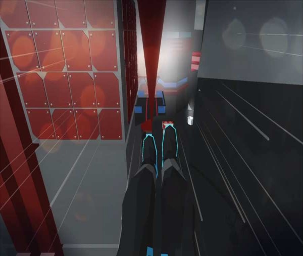游戏采用了第一人称的玩法,这就在跑酷游戏当中比较少见,至少很少有休闲跑酷游戏会选择采用这样的视角。而除了单纯的进行跑酷之外,玩家在过程中还会遇到许多敌人,并且随着游戏的推进玩家所面对的敌人会越来越高级,甚至会出现一些拿盾牌的敌人,玩家需要将他们统统消灭之后才可以继续前进,看来除了单纯的跑酷之外,游戏中还加入了一些动作元素。