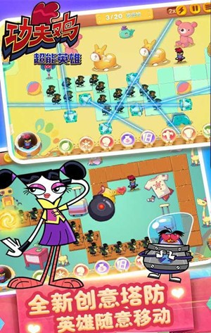 《》是一款机具策略的创新塔防类型手游,游戏根据知名动画功夫鸡改编,官方正版授权,高度还原动画角色。在游戏中玩家需要在空地处建造防御塔来抵御怪物的进攻,保护神奇的金蛋。人人都可能成为一代英雄,独特的技能觉醒拥有面对都市中的危机,功夫小鸡与你一起再度拯救世界。