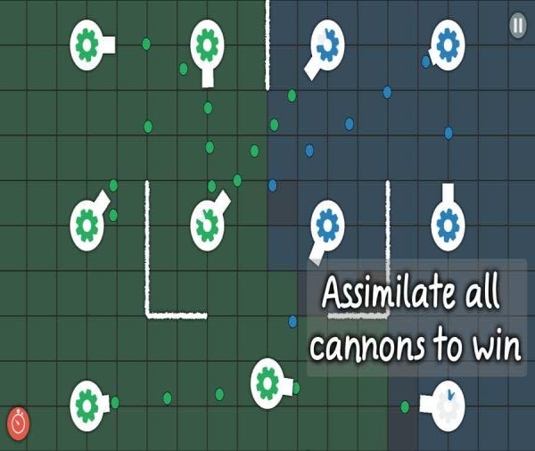 试着同化所有敌人的大炮并且保卫你自己的大炮。
