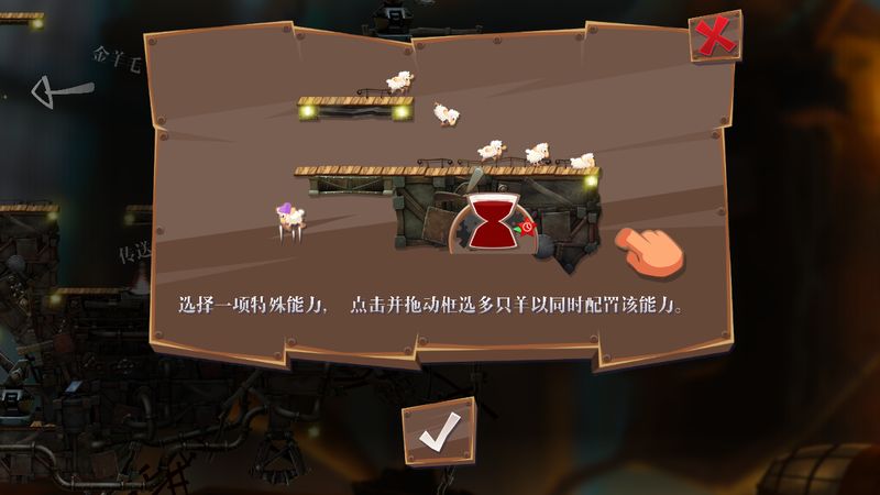 3、游戏中,玩家的目的是每一关把一定数量的绵羊送到最终的目的地。羊群出现的方式就很诡异——喇叭,而最终的目的地也是喇叭。在行进过程中,羊群要面对各种障碍和机关,稍不小心就会血溅当场。如果全部绵羊都遇难了,则游戏结束。