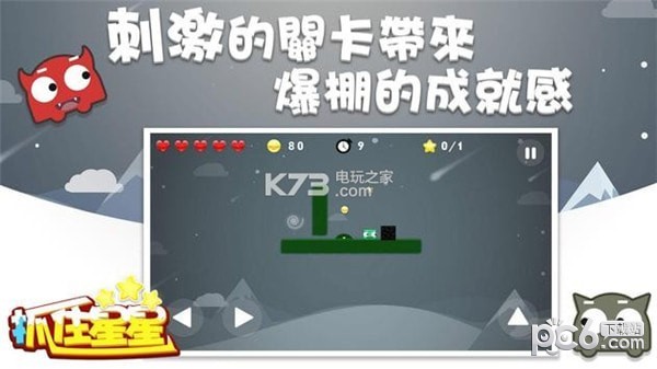 游戏是益智与冒险相结合产生的小游戏,简约清新的游戏画面风格,更有Q萌的怪星星角色带给你轻松的体验,更有意想不到的花式障碍,来展示你高超的技巧以及强大思维!