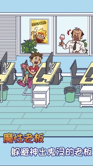 1、风趣幽默的游戏画面,与老板展开一场智慧上面的斗争。