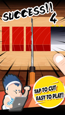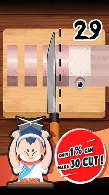 一款以生鱼片为题材的刀功切割闯关类休闲游戏,操作简单易上手,但是非常考验玩家眼力和手指反应能力,游戏中,玩家必须要把握好时机,沿着虚线切生鱼片,来挑战看看你能成功切割多少块生鱼片吧。