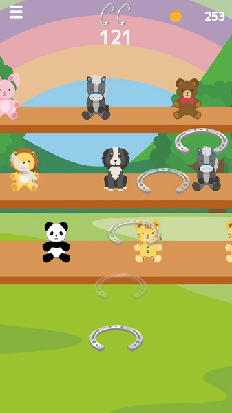 你手里有一定数量的圈圈,需要的是将这些圈圈投掷出去,只有投掷到娃娃的头上才可以获得相应的分数,并且可以收集到这个娃娃,让这个娃娃属于你了,到后来的时候,娃娃放置的位置会越拉越远。