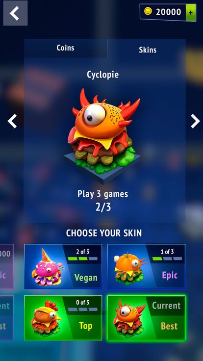 为您的汉堡选择所需的皮肤,收集食物以增长和提升能量,留意陷阱有很多。