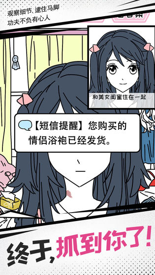 3、这款游戏比较考验你的眼力和逻辑力,需要你想办法找到关卡中对象劈腿的证据。