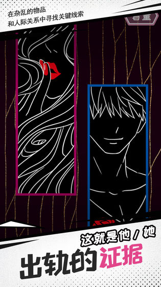1、解密式的游戏玩法,找到真正出轨的人以及出轨的证据。