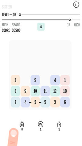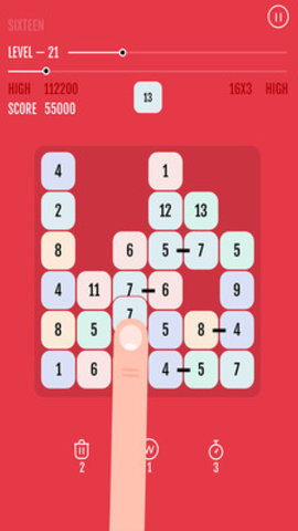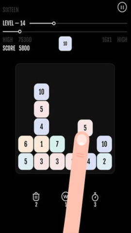 3、多种不同的玩法任你体验,极致的操作模式,移动方块将横竖的数字并列在一起凑成和为16即可。