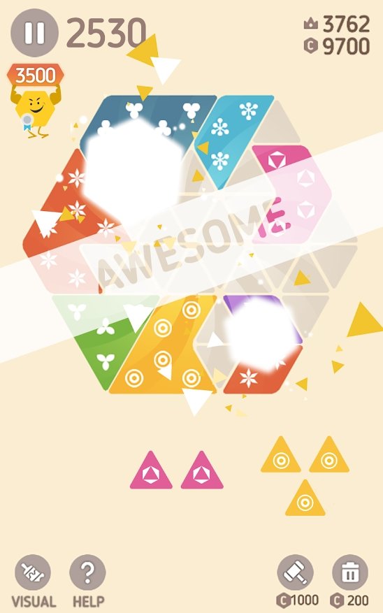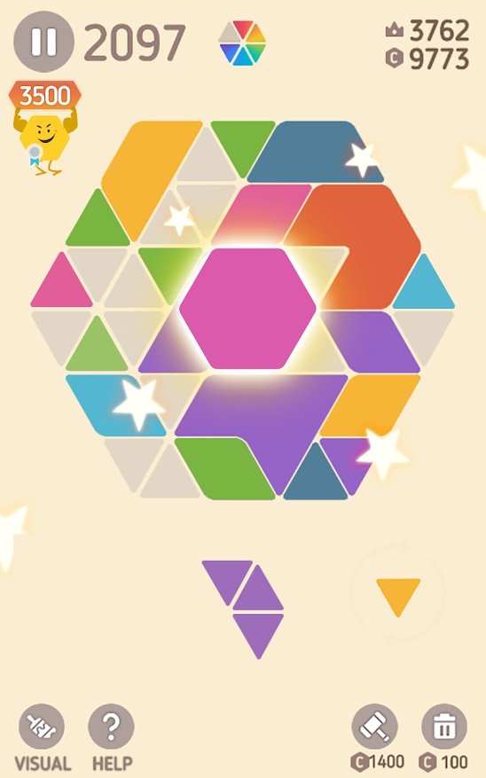 一款简单但又令人上瘾的游戏,它会挑战您的大脑。只需拖动相同颜色的三角形来组建多个六边形即可!探索年度最独特的手机游戏,马上找到让您上瘾的新游戏。是一款超级好玩有趣的小游戏哦。