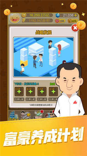 华尔街大亨是一款非常有趣的模拟经营类型的游戏,这里有Q版的商业巨头身为你说操纵的创业青年,你将在这个城市里经营你的商业帝国,你需要做的就是努力,这就是你的人生目标,随着游戏的进展,你将创建自己的商业团队,成为这个世界的商业巨头,还在犹豫什么,赶快下载来玩吧!
