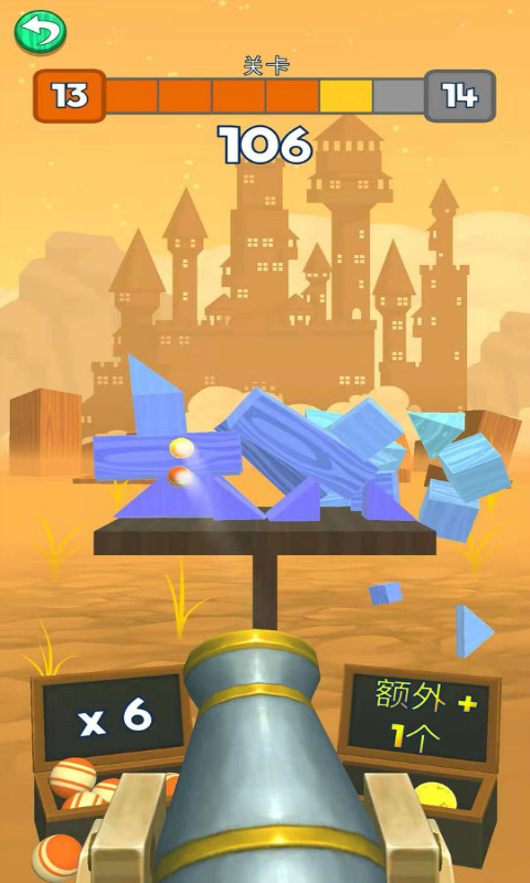 1、向建筑物投掷球,使其倒塌,但要小心不要超过允许的。