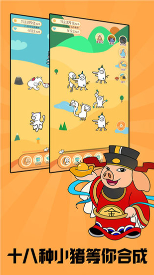 这是一款很魔性的游戏,游戏以可爱的小猪猪为主题,是一款放置合成玩法的游戏,画风清奇,玩法简单,动动手指就可以完成,非常适合上班族用来打发闲散的时间。