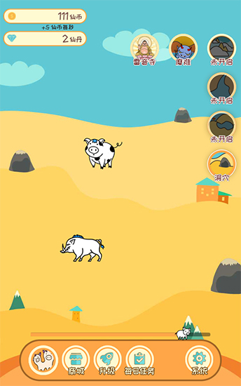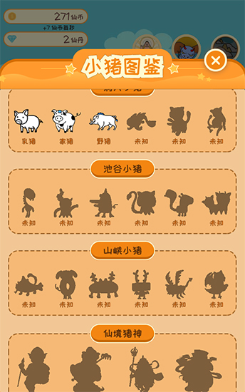 1、搞笑画风以猪为主角的放置养成合并进化游戏环节。