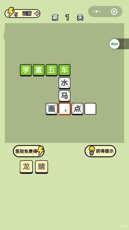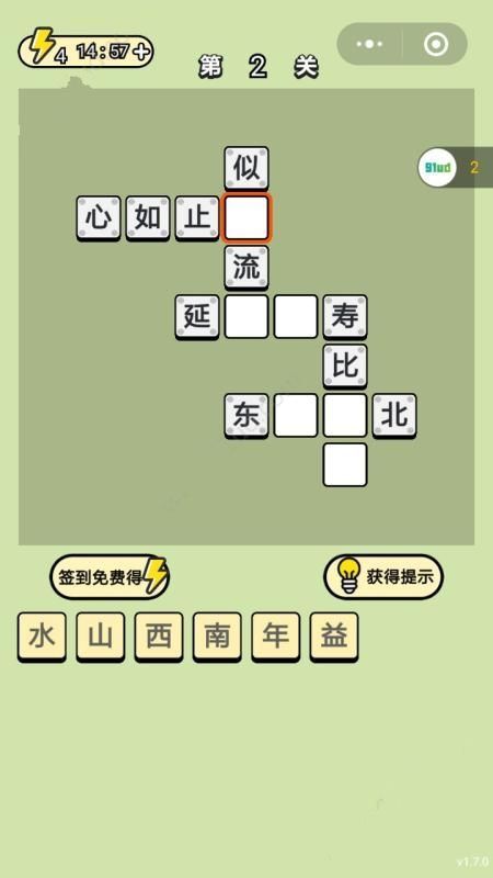 2、简单的操作玩法,下方给出的汉字中选择正确的填入空格中,组成连贯的成语。