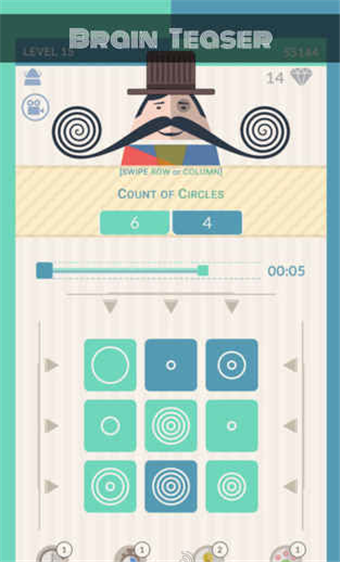 1、《大胡子先生2 Mr. Mustachio 2》是由Shobhit Samaria出品的一款益智解谜游戏,游戏中,玩家需要通过数学计算来富翁大胡子先生所给出的谜题。每回合开始,大胡子先生会给出一个数字,玩家需要在数字方块阵中,通过由左到右相加、由右到左相减、由上到下相乘的方式来得到该数字并且进入下一关卡;
