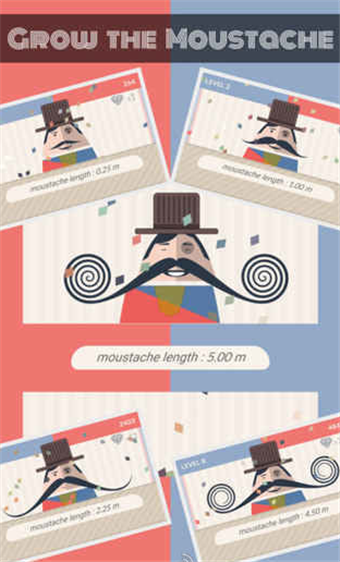 1、游戏中玩家们(最多可以四个人一起玩哦)各自控制一个胡子先生,吃掉关卡随机出现的道具和豆豆,从而变大、变小或射击其他玩家,最后体积最大的胡子先生获胜哦;