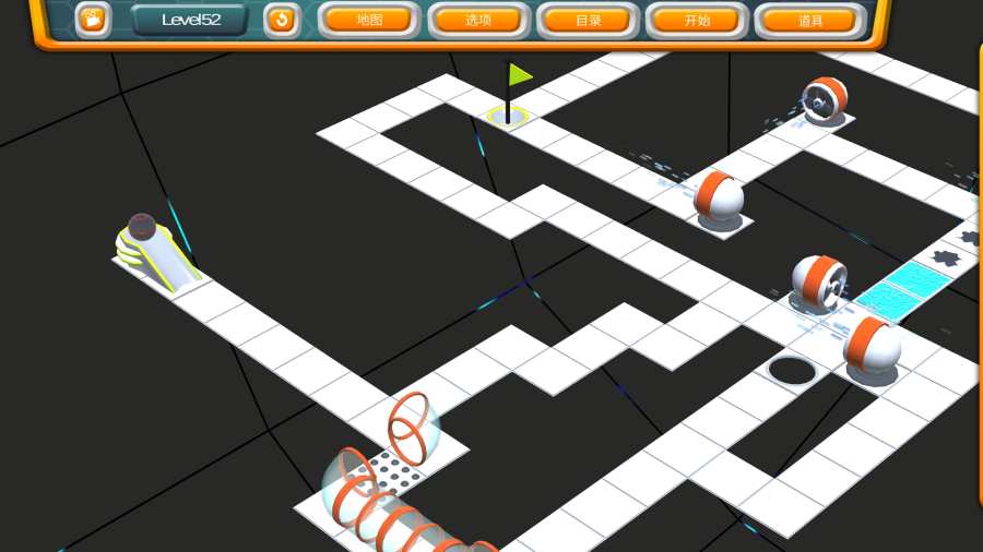 2、保证小球脱离起始平台后,借助小工具转向、起跳甚至时空穿越,战胜那些狡猾的谜题;
