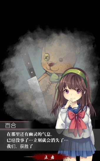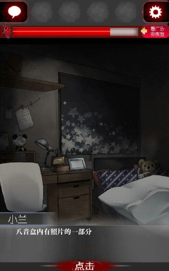 并不难,先是各种剧情,大概就是我们可怜的女主被逼着去玩一个人的捉迷藏这种坑爹游戏。先对着门使用手机,于是我们就拍出了一张诡异的照片,接着就发现左上角的小气泡,点开呗,结果是某群讨论组。通过讨论组,发现,目前缺钱关键物品,盐水。打开柜子,我们走出这个地方,四处转转,触发触发剧情,在餐桌处发现了一团黑雾。怎么办,这个时候,左上角的微信群又亮了,点开寻找帮助,原来是需要替身。这个时候选择手机,双击两下,把人偶拿下来,对着黑雾用人偶,于是人偶就被赶走了,获取桌子上的盐水。获取盐水之后,转一圈,再转回餐桌前,发现多个书包,获取隐藏道具书包。这关就差不多结束了,回到最初的地方,点击躲藏,回到柜子里。第一关结束;