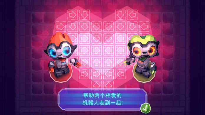 《》是一款非常有意思的关于机器人的休闲解谜游戏,人工智能之间到底有爱情没有呢?如果有,那是从一始终的爱情还是一条通用的数据呢?游戏将为你讲述一段甜中带小虐的爱情故事,快来帮助相爱的两个机器人走到一起吧!
