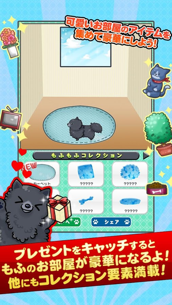 1、操作可爱的黑色软绵绵小狗狗收获道具;