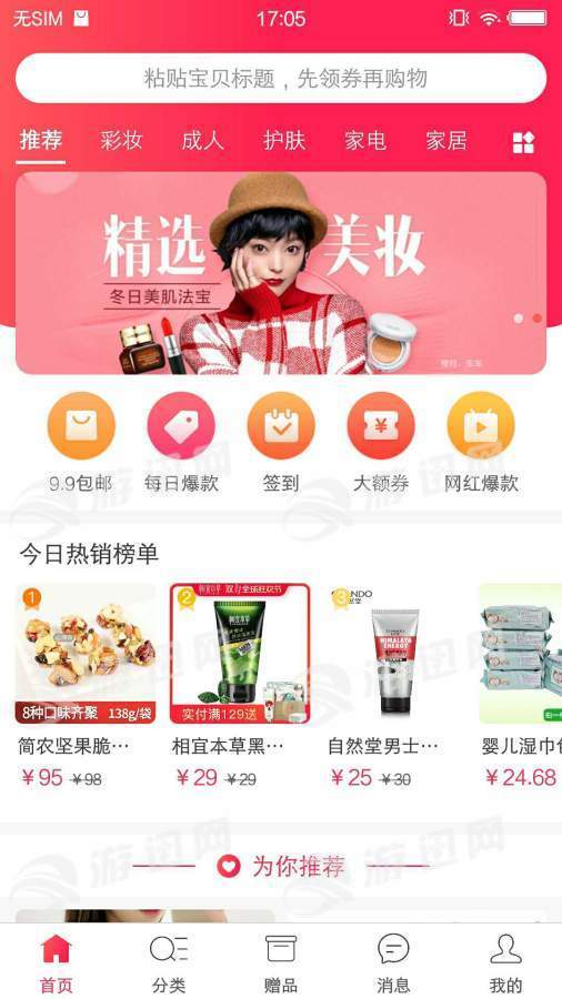 在下是一款非常不错的手机商品购物软件,该软件支持美妆,,护肤,加点,家居。萌宠,母婴等等不同的商品购。物美价廉,诸多优惠,先领券后购物。