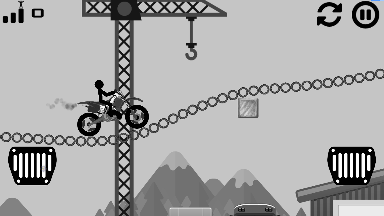 玩家通过控制前进与后退,在各种障碍中穿越,碾压火柴人。