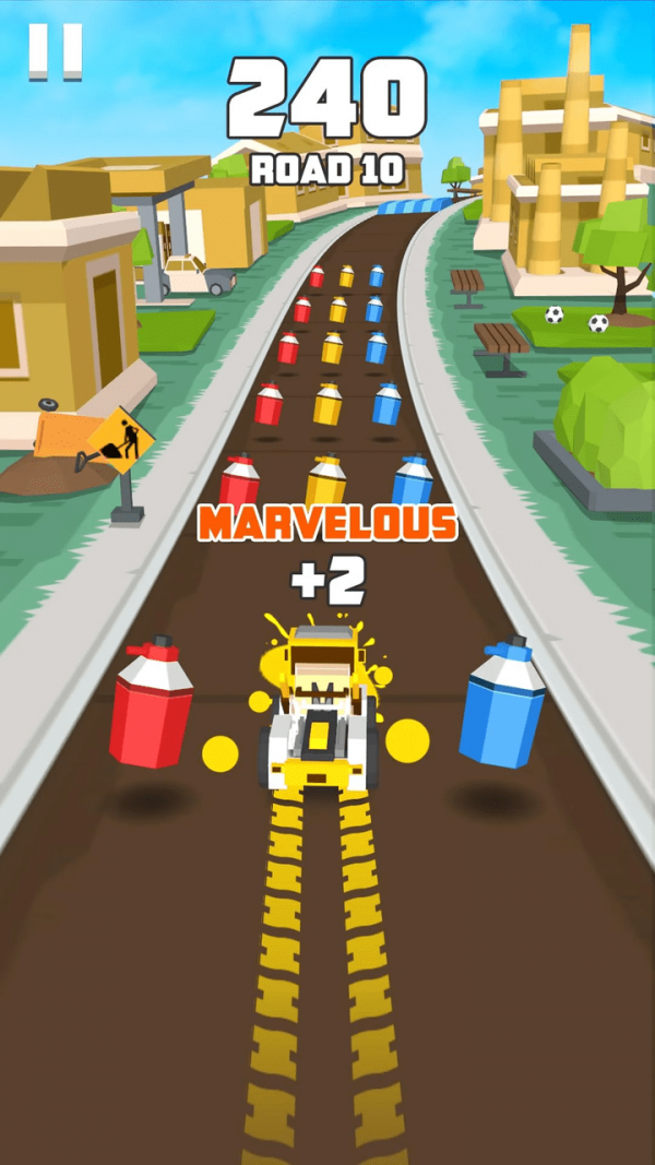 2、像专业人士一样玩,不会撞到不同颜色的障碍物,使用漂移来避免它;