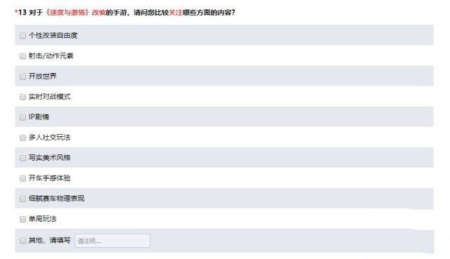 相信很多玩家腾讯游戏的玩家都知道,只要腾讯发布这种调查问卷证明就要开发或者打算开发某款游戏了,这次发布了速度与激情的调查问题,腾讯已经打算开发速度与激情手游了。