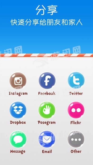 -一键分享至朋友圈、微博、微信、腾讯QQ。