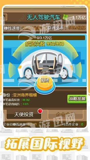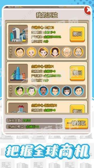 华尔街首富是一款模拟经营类游戏,打造自己的商业帝国,成就首富人生。游戏中玩家化身小公司员工,开启了自己的一家小店,不断的发展,扩展商铺,结交各种上流名人,招募各业精彩人才,赚取更多的金钱,投资各行各业,拥有自己的大型上市公司,成为了这个城市的首富。喜欢的小伙伴就去下载体验体验。