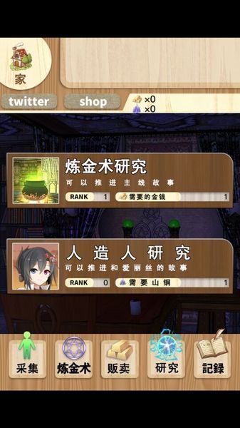 闲的蛋疼的某炼金术士潜心研究技术,终于有一天炼制出了活生生的人类,取名为爱丽丝……然而爱丽丝虽然会叫主人,但性格并不是十分鹌鹑,而是略带腹黑的小魔女型。今后想要偷奸耍滑是不可能了,玩家要去收集材料多多赚钱,为将来迎娶新娘而努力哦。