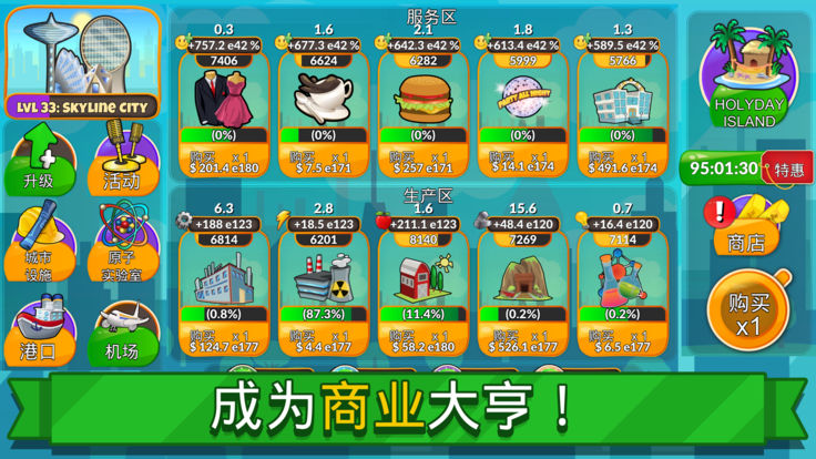 1、模拟经营你的商业帝国,挣钱就是你的第一目标,挣钱之后,就是去好好的享受你的人生。