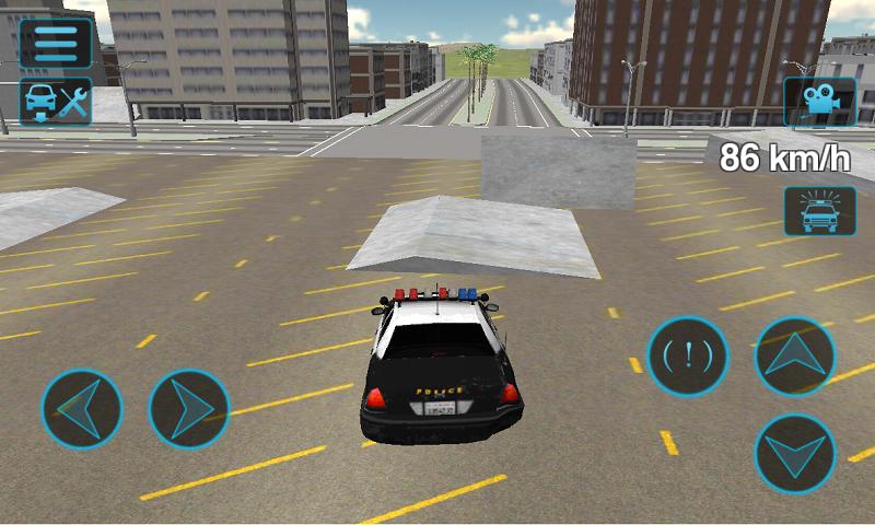 这是一个模拟警车的游戏。一出来你会发现你在一个驾驶的训练场,场内随你驰骋。你还能选择是重力感应控制还是按钮控制。不过你以为这是游戏最大的乐趣吗?不,我最喜欢的是警车被撞得面目全非的样子。