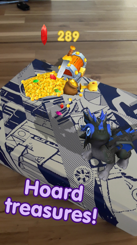 玩家将可以在任何一个平面上进行捕捉,寻找细节丰富、光线明亮的地方,将摄像头放置在目标上方10厘米处,即可成功完成捕捉并建立巢穴。游戏流程很长,相当于养了一只电子宠物,但是AR玩法,让虚拟与现实相结合,显得更加真实可感。