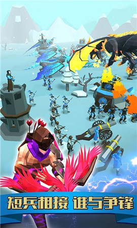1、战场有近战的长矛兵、盾兵、斧兵等,远程的火枪手、长弓兵、AK枪兵等,还有骑手、战车、弩炮等等,更有3D魔幻的法师、火龙、忍者各种神奇的战斗力;