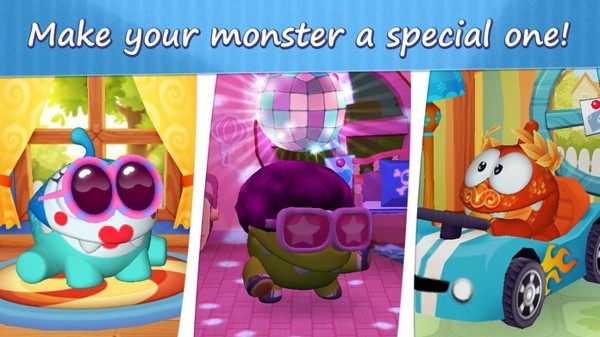 《我的奥姆(My Om Nom)》主角是Cut the Rope《割绳子》中那只可爱也很会卖萌的绿色小怪兽 Om Nom,那是英国工作室 ZeptoLab 所推出的游戏中的主角。与一般的宠物游戏大同小异,玩家需要定时给 Om Nom 投喂食物,给它换装打扮、洗澡,偶尔也要和它玩耍(玩小游戏)来逗它开心。而且还可以帮 Om Nom 装饰它的住处,增加好感度。游戏中的 Om Nom 依然是那么可爱,爱吃糖果,憨态可掬的样子萌得心都化了啊!虽然以虚拟宠物的身份亮相,玩家要喂糖果来保持它的愉悦心情,没吃到香甜的糖果,Om Nom 也会生气难过,酒足饭饱之后,手指一拉,Om Nom 就得乖乖地睡觉去!
