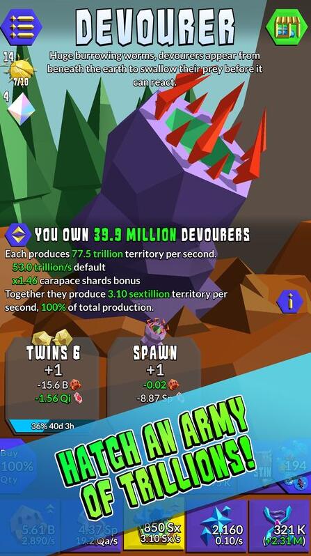 《模拟虫群:进化》是一款模拟手游,点击,然后点击从卑微的幼虫和雄蜂全能蜂巢,超越这种空闲杰作发展自己的方式!征服与可怕的毒刺和蝗虫的领土,成为单位生产的大亨。点击以牺牲较小的单位为殖民地的更大的提升和向总银河征服的终极目标管理群。逐步建立你的虫群和征服群模拟器宇宙!
