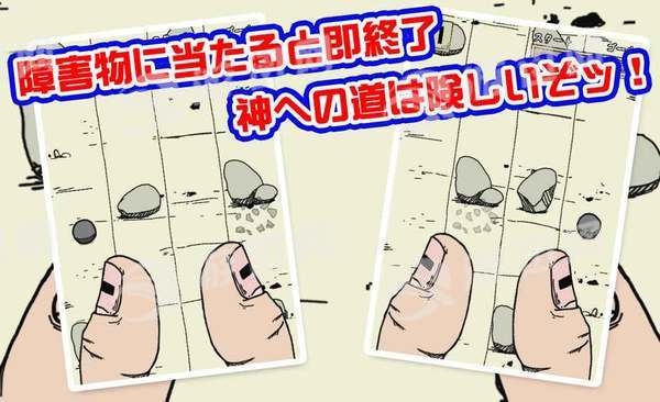 只要其中一个撞上石头就会粉碎,游戏就会GAME OVER,屏幕上的两个拇指就会转过来对你露出嘲讽的笑容。