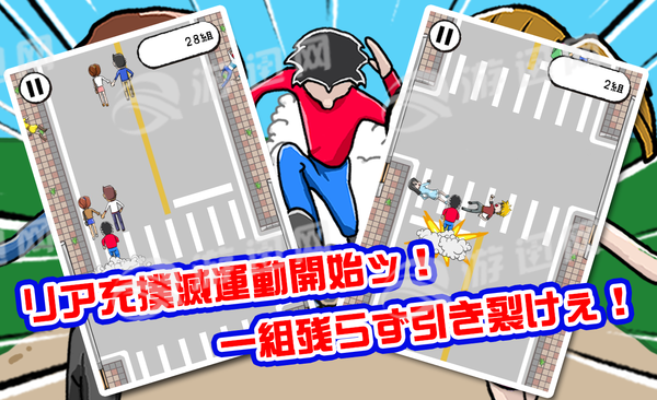 3、玩家操控单身狗去扑灭牵手的情侣!