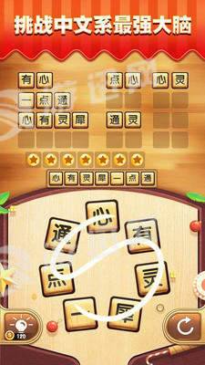 这是一个结合猜成语和线条连连看的益智趣味文字游戏,是中华民族传统的文字游戏新玩法。