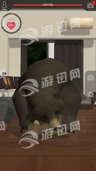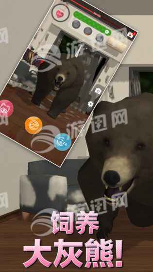 还可以跟它玩或者是哄它睡觉,主角毕竟是一只带有野性的大灰熊,当它肚子饿了或是心情不好时,立刻就是对玩家施展「灰熊冲撞」,并且以熊掌招呼玩家。