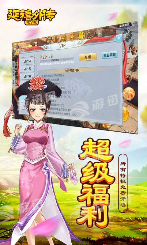 《延禧外传超V版》以古装言情电视剧改编,让玩家深入清朝,选择自己喜爱的角色进行战斗,完美还原剧情,带你领略不一样的爱恨情仇,并从中获得完美的游戏体验。MMOARPG减少了升级的经验,避免漫长的升级过程,助你快速满级,走上巅峰!