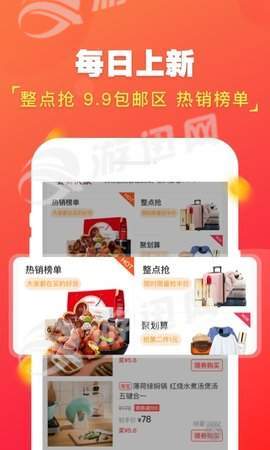 2.多个优惠板块,9.9包邮,每日淘抢购,打折上新。导购、返利、各种优惠,尽在惠淘券。